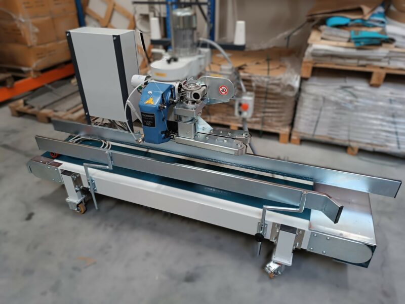 Tapis convoyeur "Technique" de marque Fischbein, en acier thermolaqué, longueur utile 4500mm, Largeur de bande utile 320mm